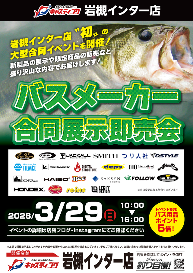 2026年3月29日(日)キャスティング岩槻インター店にて開催されるBASSメーカー合同展示即売会 にO.S.Pブースを出展いたします。