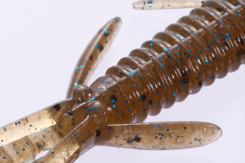 逆手フォールやスイミングでは水を受けた瞬間から震え出し、その振動がボディ全体に伝わることで全パーツを細かく震わせる。また、ロッド操作でも機敏にパタパタと開閉。着水からピックアップまで常にバスを誘い続けてくれる。