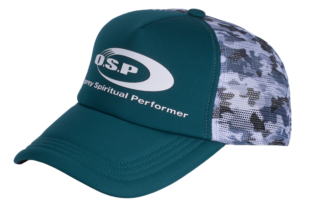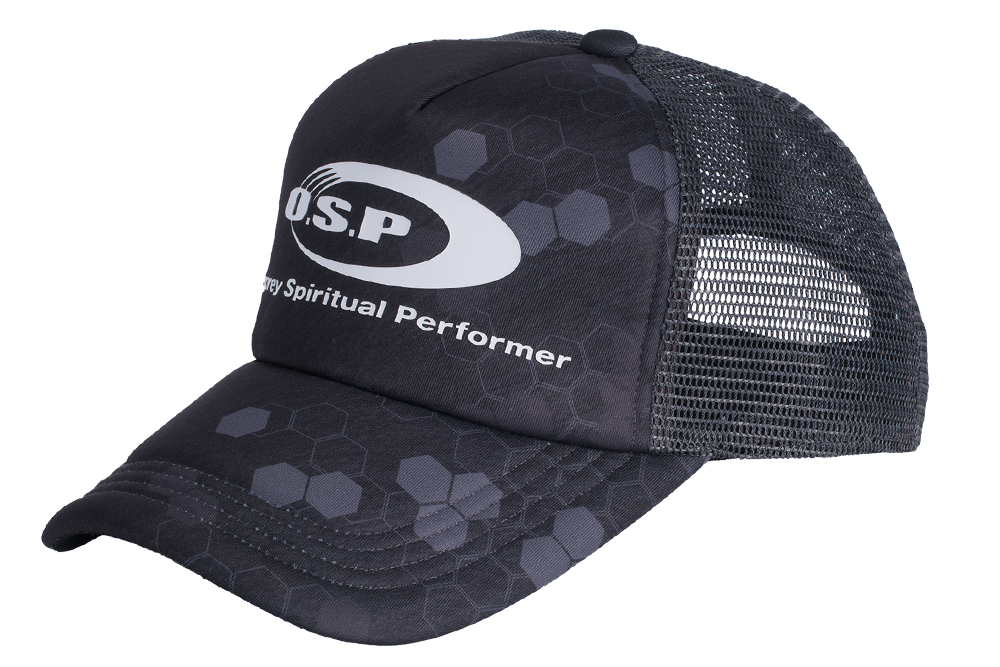 キャップ前立て部分にO.S.Pロゴを大胆にプリントしたスタンダードなフォルムの「O.S.Pロゴメッシュキャップ」です。O.S.Pロゴメッシュキャップは実釣時の使用を考慮し、キャップのツバの長さは元から先端までが85mmと長過ぎず短過ぎずの設定でしっかりとシェードも確保しています。さらにつばの内側は光の乱反射を抑えるため、すべてのカラー共に黒の生地を採用し実釣機能も優れています。