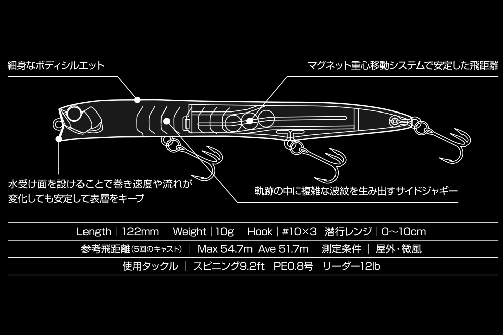表層を安定してレンジキープ、バチ抜けや細身のベイトフィッシュパターンに最適