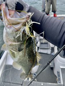 スピナーベイト、クランクベイト、ミノー、どちらにせよリーリングはルアーの動きが破綻しない程度、そして1日巻き続けられる範囲で早く動かすことがキモになります。