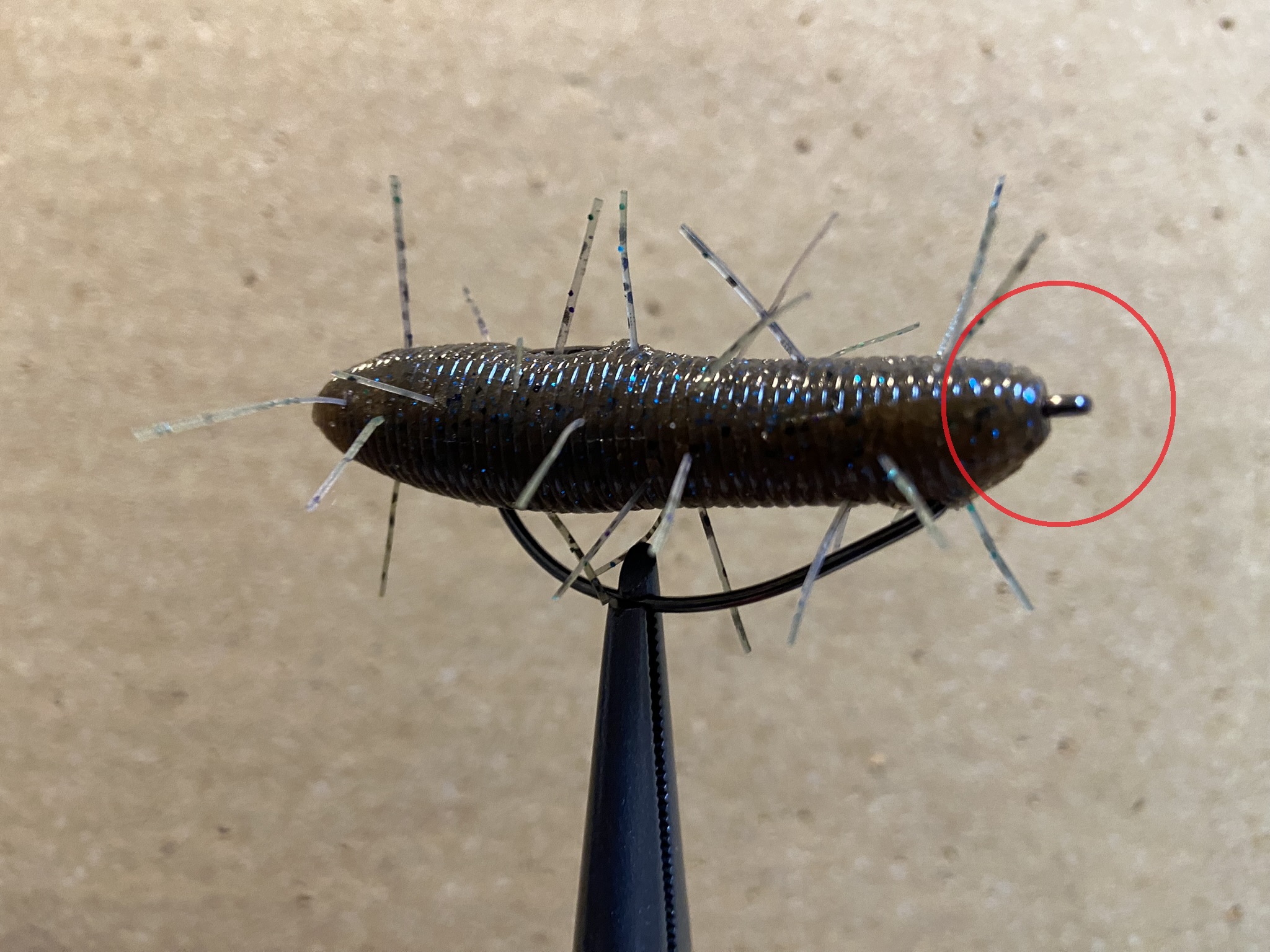 ■ フックとシンカーのこだわりフックはワームの先端(最も尖った部分)から刺すことが重要。