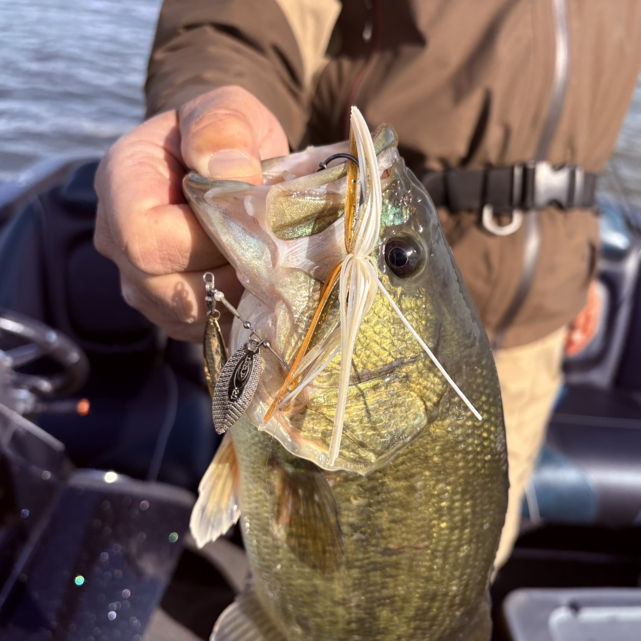 どうしてかというとこのエリアはシラウオが多く水面近くを群れで泳ぐシラウオをバスは下からバスが食いあげる習性があるからです。ブレードはダブルウィロー沈めたくないのでウエイトは軽い1/4OZをチョイス