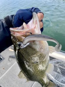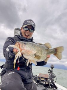 カレンのボディーサイズとソフトマテリアルテールからくるナチュラルな波動が、シビアな冬のビッグバスに有効です!