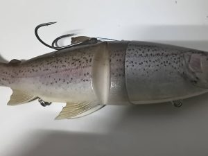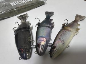 先ずNICHIKA167Fの特徴としてはヘッド側がハードマテリアル、テール側がソフトマテリアルというハイブリッドスイムベイトです。泳がせてみた最初の感想としてはとにかくバランスがいい!スイムベイトありがちな傾いて泳ぐということなく、ファストリトリーブでもスローリトリーブでも傾くことなく泳いでくれます。このバランスの良さは背針チューンを行う上で特に重要な要素です。バランスの悪いルアーのトップ側にフックウエイトが乗るとさらにバランスが崩れ、背針チューンをしても根掛回避効果が薄くなってしまいます。その点NICHIKA167Fは安心してチューンを行えます。